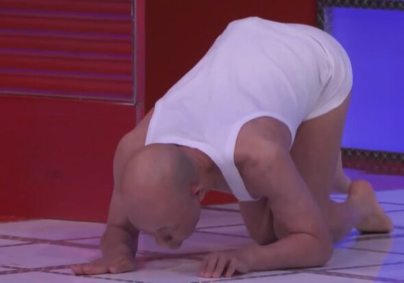 小峠は、西村の前で踊り出す。